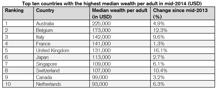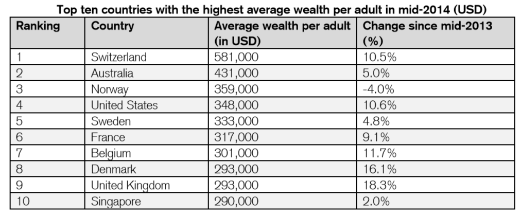 1人あたり平均資産だとアメリカ4位、日本ランク外