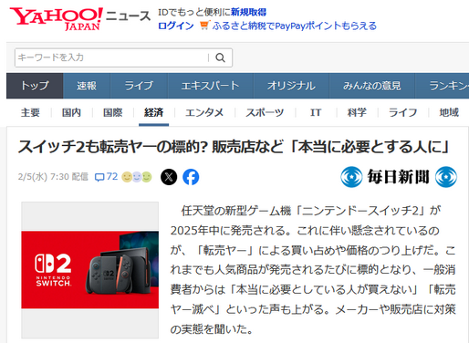 任天堂ハードはファミリーが転売ヤーを追い払う