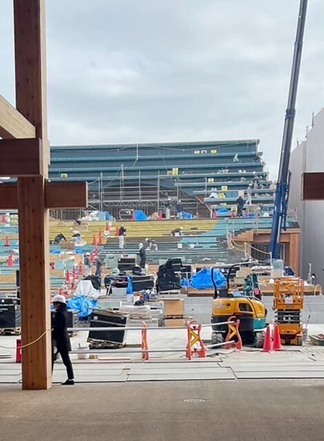開催期間中も工事を進めて仕上げるつもりでしょう。運営もさすがに焦ったのか、2月から三交代制の24時間