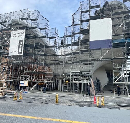 一目で分かる。繰り返すが、開幕は約1ヵ月後の4月13日である。万博会場でパビリオン建設に携わっている