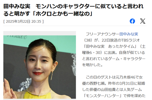 深めたとあり、田中は「私、モンハンに出てくる人にめっちゃ似ているらしいの」