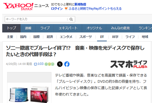 一方、業界大手のソニーは2025年2月をもってブルーレイディスクの生産を終了。