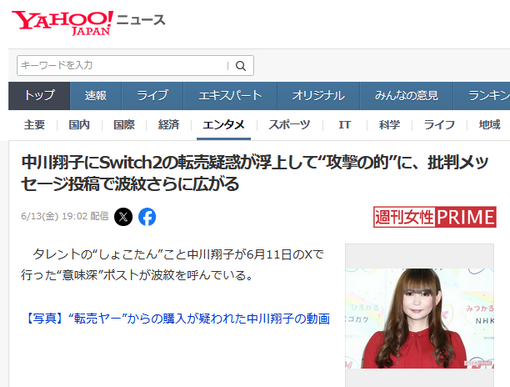 中川に向けられた疑惑はSwitch2を“転売ヤー”から購入したのではないか
